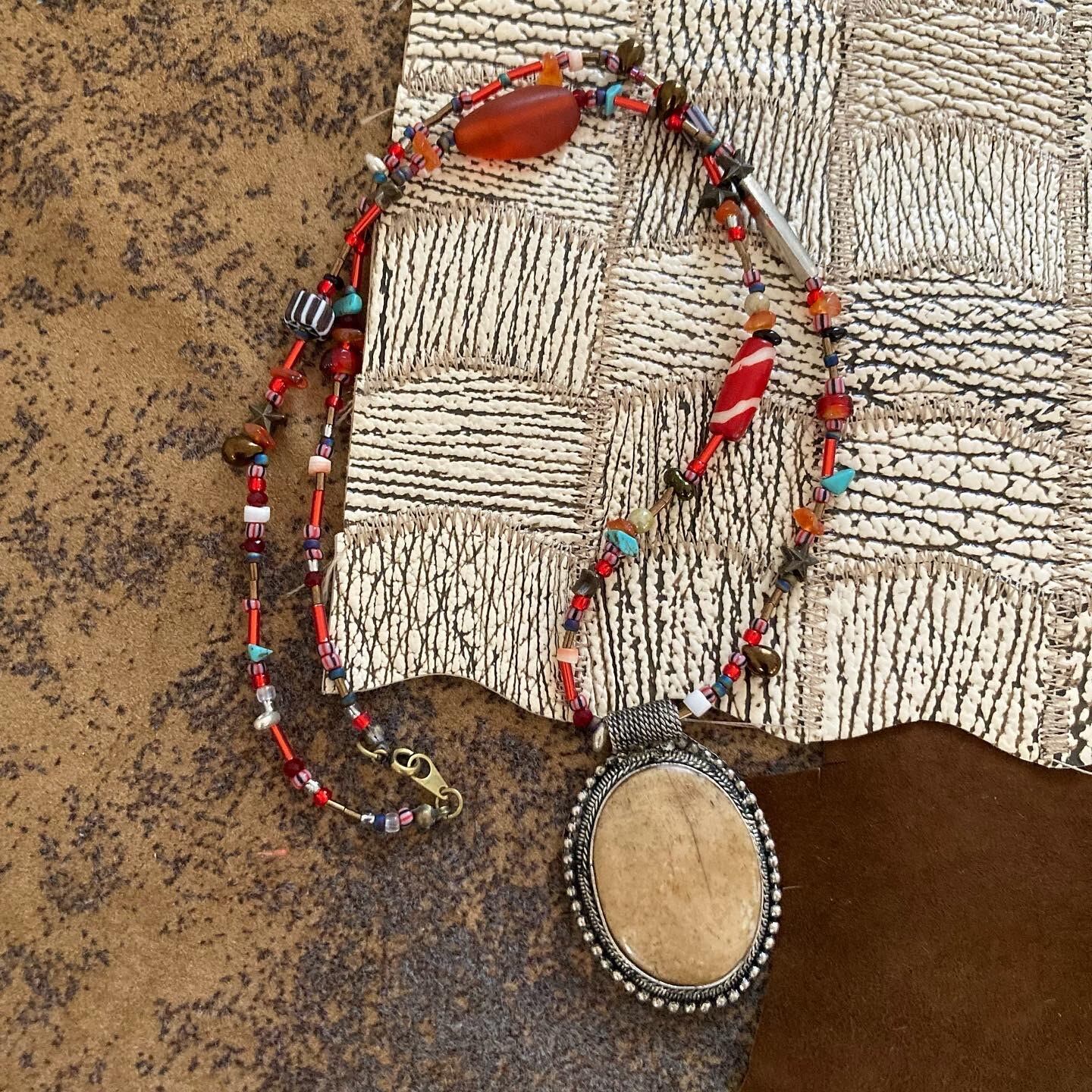 ローリングストーンズのLPジャケットから着想したビーズのネックレスです。