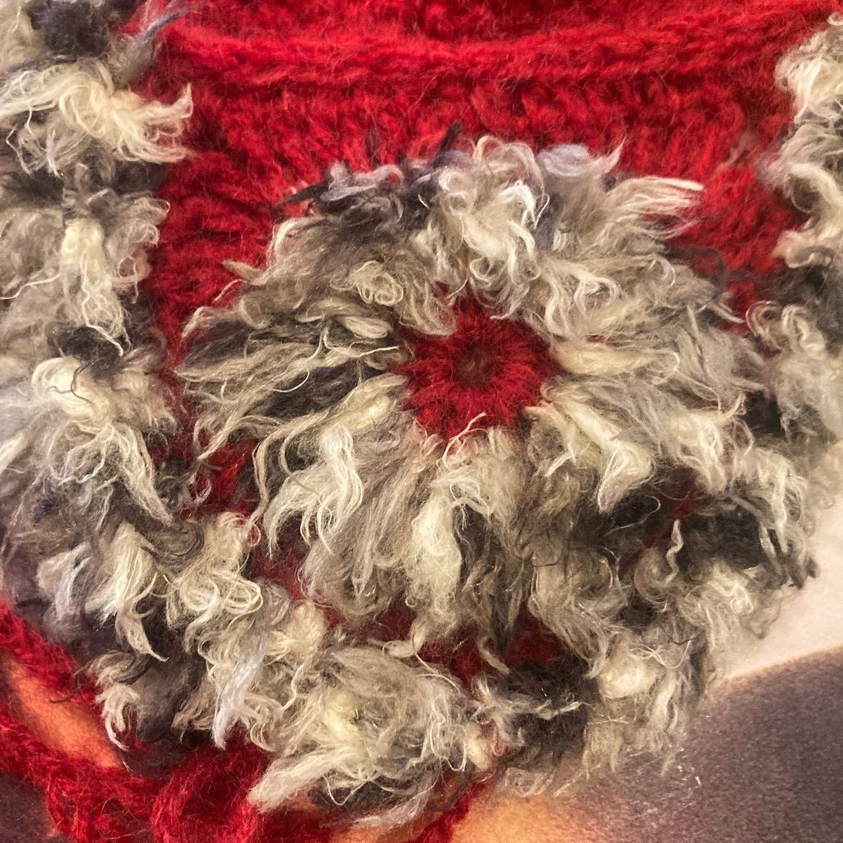赤い部分は、モヘアとウールの糸をミックスしており、ふわふわな被り心地で、上品な赤色になっています。