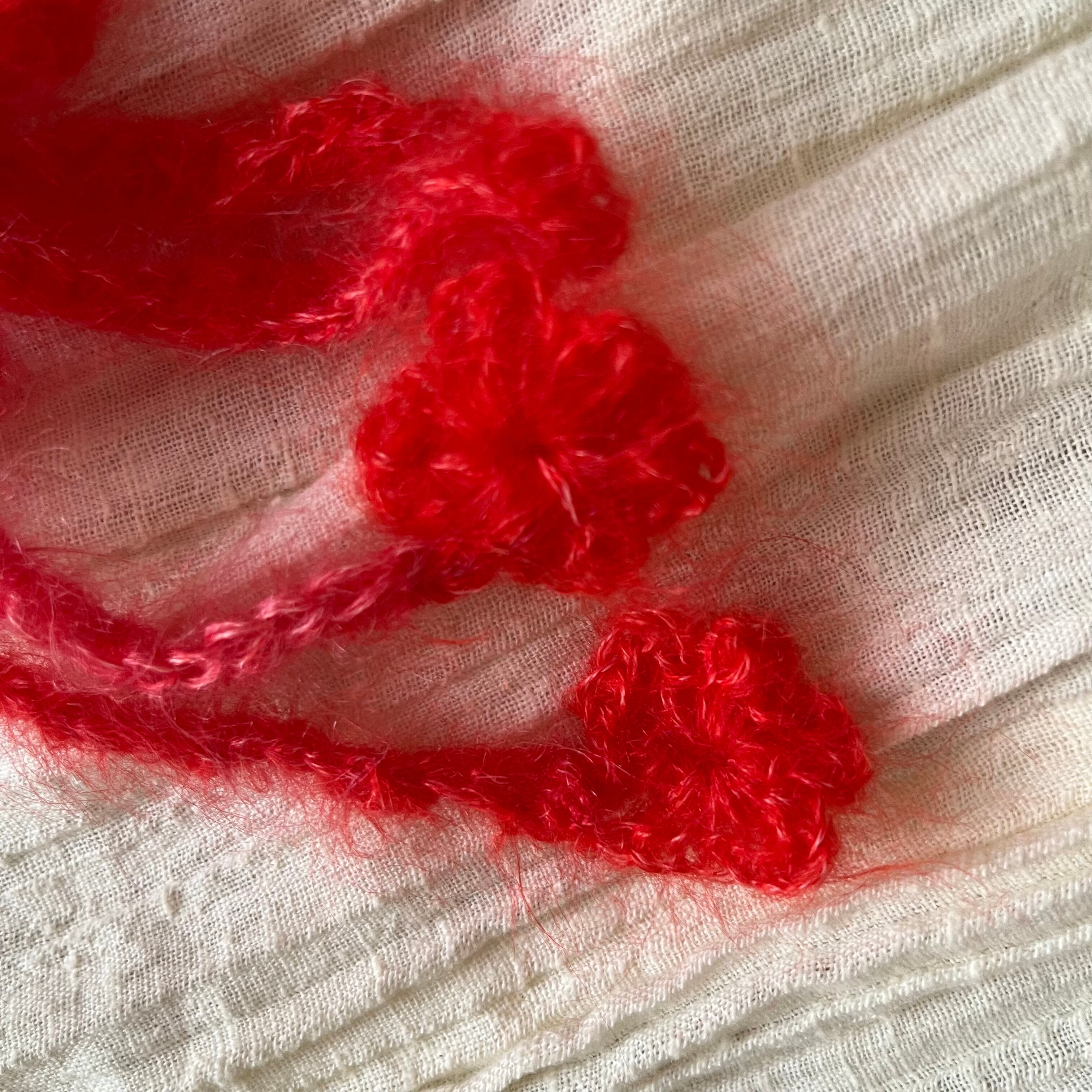 オレンジ系のグラデーションが可愛いモヘアの糸を使用したバブーシュカ。