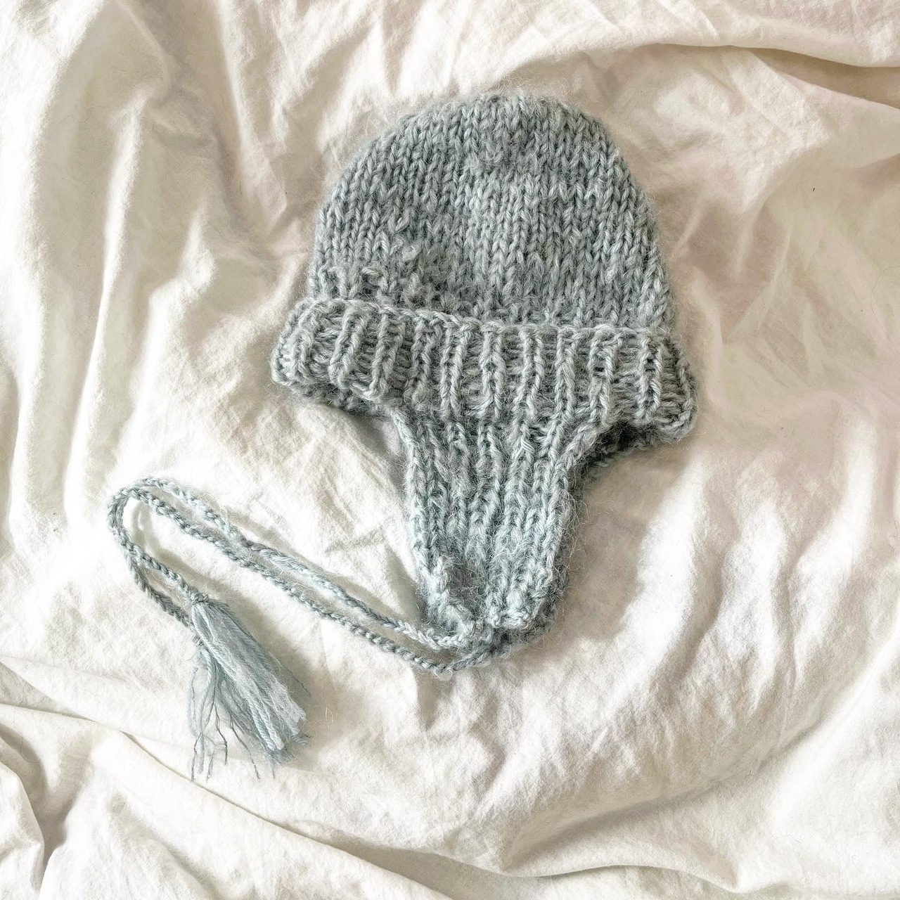 モヘアの柔らかい毛糸で編んだニットキャップ。