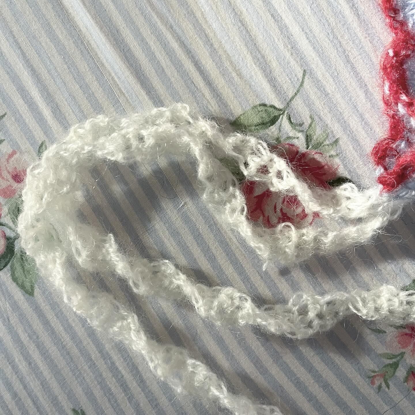 水色、赤、白の3色の色合いが可愛いボンネット。